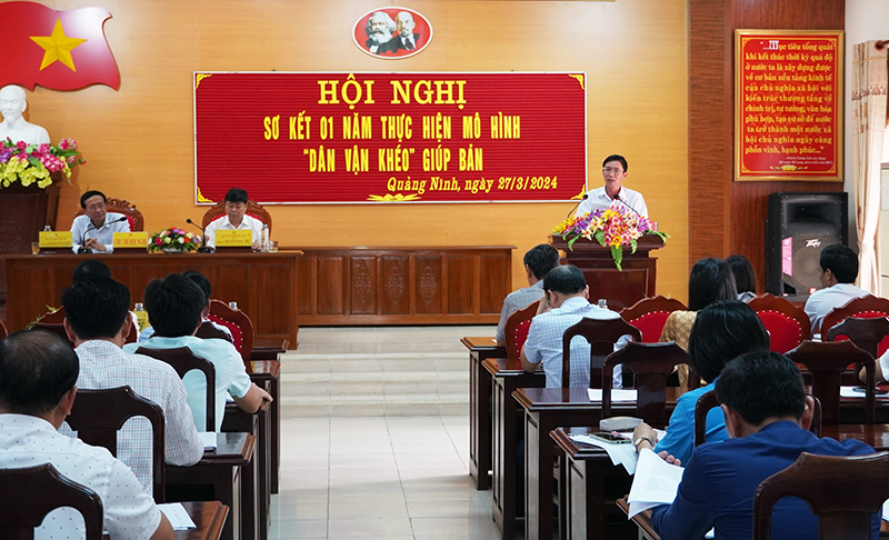 (QBĐT) – Sáng 27/3, Huyện ủy Quảng Ninh tổ chức hội nghị sơ kết 1 năm thực hiện Kế hoạch số 72-KH/HU, ngày 17/2/2023 của Ban Thường vụ Huyện ủy về mô hình “Dân vận khéo” giúp các bản thuộc xã Trường Sơn và Trường Xuân phát triển kinh tế-xã hội (KT-XH), giảm nghèo bền vững, giữ gìn bản sắc văn hóa và an ninh trật tự (KH số 72). Tham dự có đại diện lãnh đạo Ban Dân vận Tỉnh ủy.