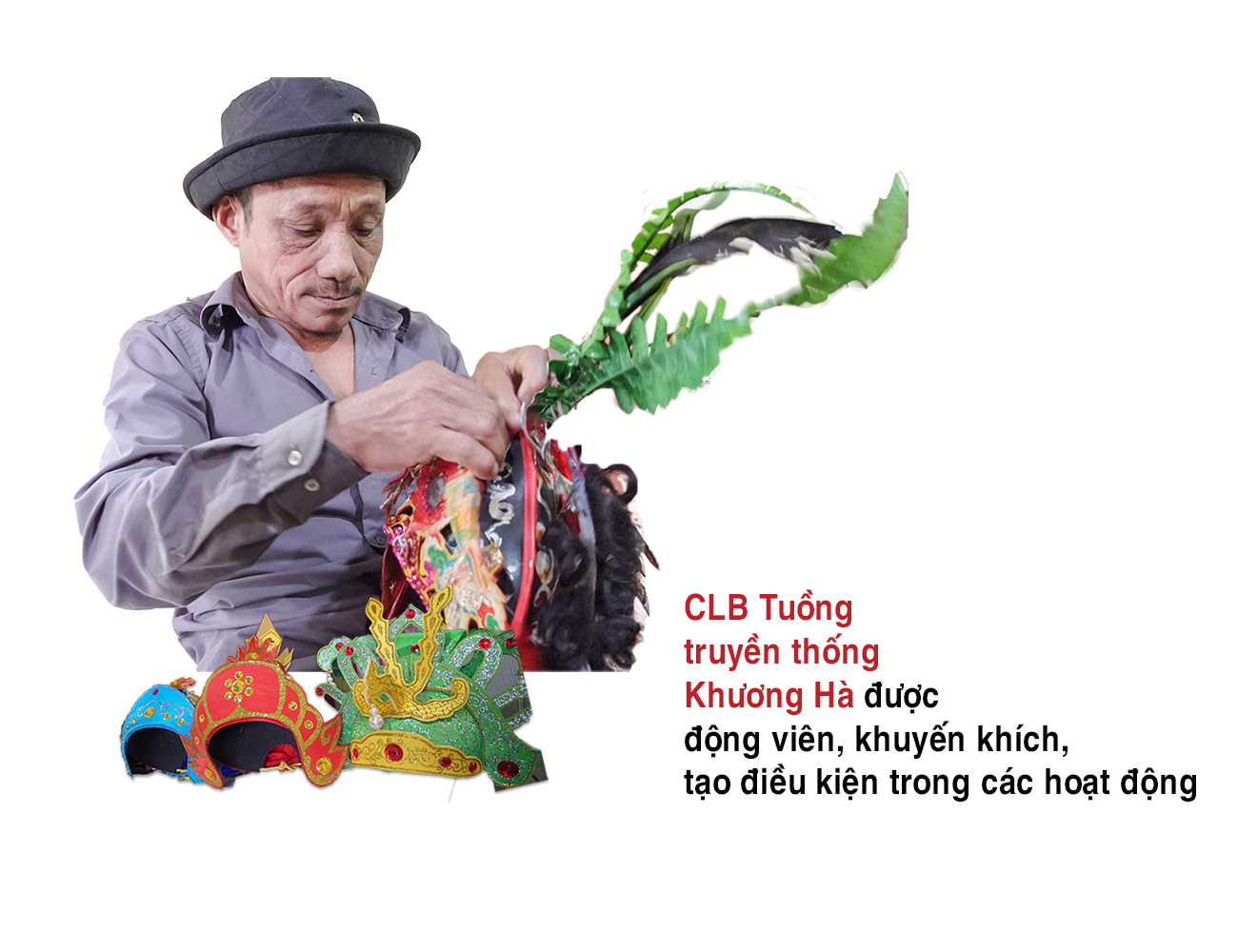 Những ngày này, không khí sinh hoạt của Câu lạc bộ (CLB) Tuồng truyền thống Khương Hà (xã Hưng Trạch, Bố Trạch) khí thế, sôi nổi hơn hẳn. Bởi lẽ CLB vừa nhận được “quà” là 4 chiếc mũ phục vụ cho biểu diễn được gửi từ Thừa Thiên Huế. So với những chiếc mũ đang có, 4 chiếc mũ mới này không chỉ đẹp về hình thức, chất liệu, mà còn rất phù hợp với các vở diễn của CLB từ màu sắc đến thần thái.