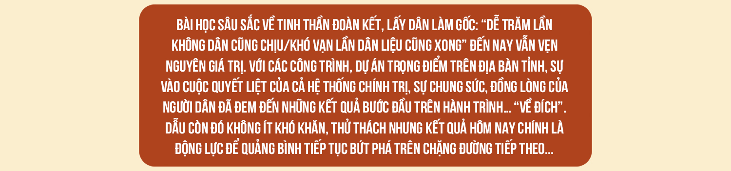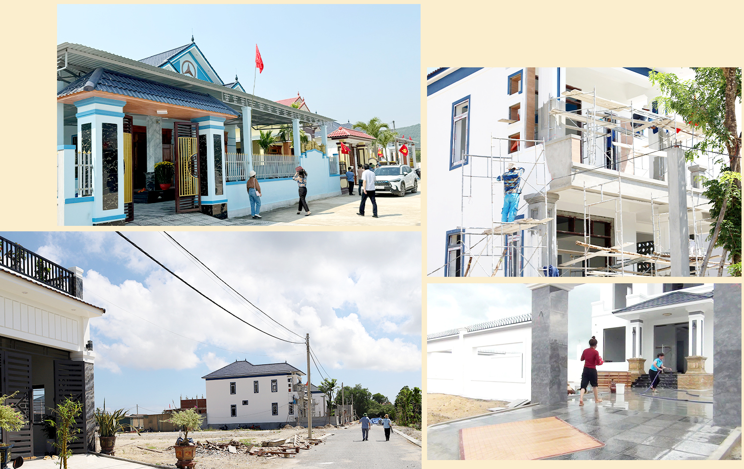 Tại khu TĐC tổ dân phố Dũng Cảm, thị trấn Nông trường Việt Trung (Bố Trạch) nhiều ngôi nhà mới đã hoàn thành đầy khang trang, bề thế. Tổ trưởng tổ dân phố Dũng Cảm Lê Văn Quảng cho biết: “Khu TĐC hiện có 27 hộ nhận đất, trong đó 18 hộ dân đang xây dựng và hoàn thiện nhà ở, đời sống của người dân đã dần ổn định. Tuy vẫn còn những bỡ ngỡ về nơi ở mới nhưng hầu hết người dân tại khu TĐC đều nhận thấy rằng, đồng thuận sớm di dời lên khu tái định cư là quyết định đúng đắn. Những hộ dân lên nhận đất, làm nhà sẽ sớm ổn định cuộc sống và Tết Nguyên đán 2025 sẽ được đón Tết trong những căn nhà mới”.