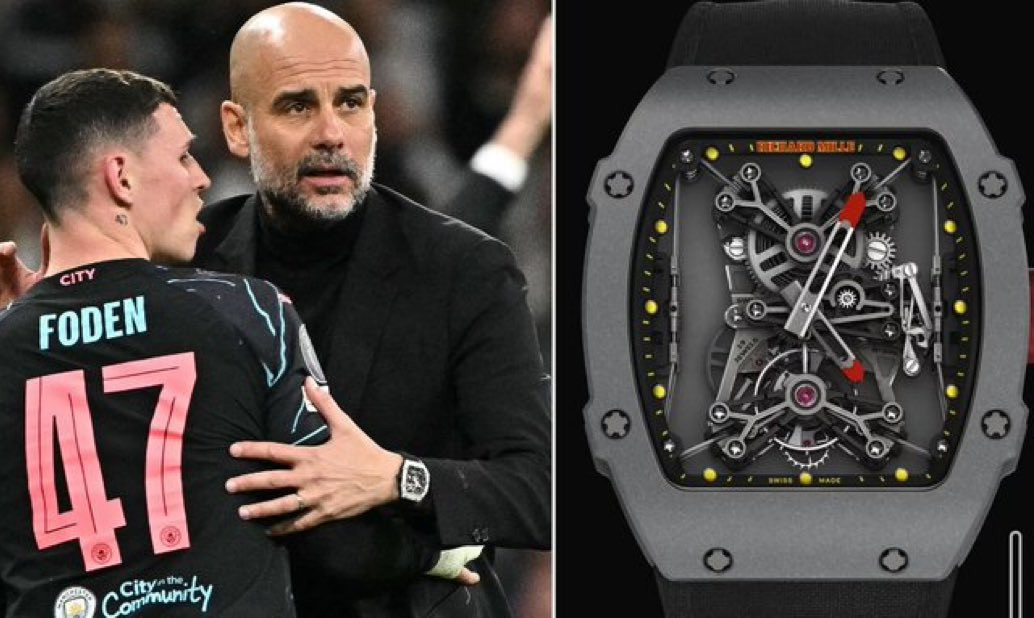 Pep Guardiola khoe thú vui xa xỉ – là chiếc đồng hồ cực hiếm trên thế giới, trị giá 1,1 triệu bảng ở trận Man City 3-3 Real Madrid tại Bernabeu.