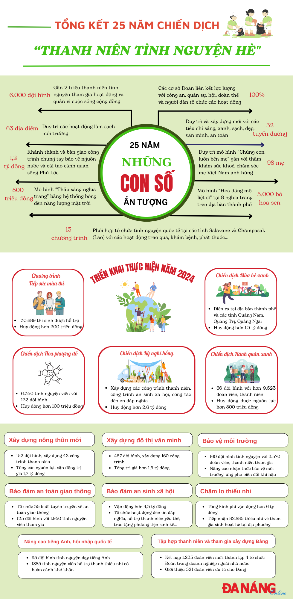 ĐNO – Ngày 18-9, Thành đoàn tổng kết 25 năm chiến dịch thanh niên tình nguyện hè. Nhiều chương trình, hoạt động để lại dấu ấn tốt đẹp trong xã hội, lan tỏa các giá trị tình nguyện trong cộng đồng như: hoa dâng mộ liệt sĩ, chúng con luôn bên mẹ, thắp sáng nghĩa trang…